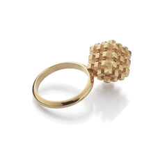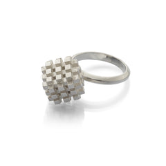 The Airspace cube is set atop a D-shaped band that measures a size N. Alternative sizes available and made to order. Designed to fit across the hand in the crevice between fingers this is a luxury statement in elegance and design. Handcrafted in Co. Kildare Ireland, the piece is hallmarked by the Irish Assay office. Available in Sterling Silver, Gold Vermeil. Rings made in 9ct, 14ct & 18ct yellow gold available to order POA.
