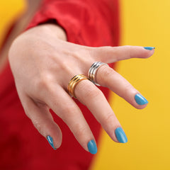 The ring is really striking particularly on a larger hand or broader fingers. Although shown here on a female hand the ring is also suitable for men and can be sized accordingly. Available in sterling silver with a gold vermeil option it's a real showstopper for the confident individual. Prices shown are for Size N rings. Other sizes available, just get in touch.
