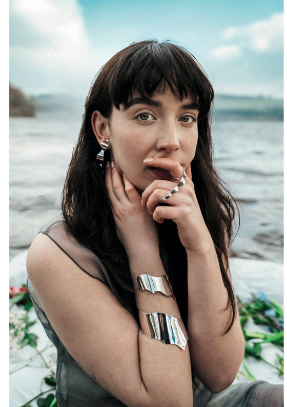 “As humans we have a deep connection with water. We are made up of it, we play in it , we cannot live without it, yet in today’s world too much water, or in some cases the lack of it, can destroy us. Given our island situation in the North West Atlantic, in Ireland we are particularly exposed to water and its impact on us. I wanted to dramatise this connection using more traditional silversmithing skills that we’ve always had here in Ireland to create beautiful fluid pieces of silver jewellery typical of my contemporary statement style.”