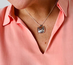 Indulge in the understated elegance of this unique Silver Cushion Pendant, inspired by trips to Mexico and the Aztec culture. Handcrafted from Sterling Silver in my Kildare based studio the piece is hallmarked by the Irish Assay Office in Dublin Castle.