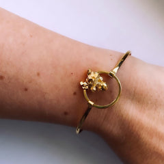 Seen here in gold this piece is available in Gold coated Sterling Silver and also Sterling Silver. The clasp closes through the cluster frame for continued elegance and ease of wearing.