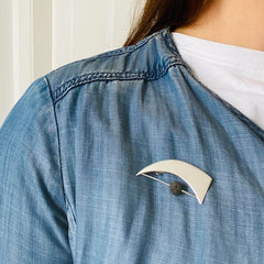Embrace your inner Brooch Obsession with this Silver Eye Brooch, a striking blend of symbolism and modern design, handcrafted from sterling silver. Featuring a beady lava 'iris' that slides along the length of the brooch this unique piece of wearable art is bold yet minimal balancing organic texture with sleek lines. This contemporary design is a versatile statement for both structured tailoring, relaxed linens or heavy sweater featuring a robust brooch pin. Wear it as standout piece of jewellery filled with meaning. This brooch is individually made by hand, honouring the craftsmanship behind contemporary Irish jewellery.