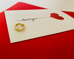 Hallmarked by the official Irish Assay Office located in Dublin Castle, this piece is available in gold and silver with a gold plated option for the earrings. Ring pictured is a size M. Ring measuring service available so just get in touch. Dimensions are 6mm wide, with a rounded edge for a comfort fit. Please note for a larger ring size, more metal is required so the price for a larger rings will be supplied once ring size is confirmed.