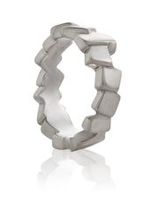 Reflecting the Adversity collection theme, this ring is angular but organic, featuring a series of alternatively aligned squares stacked one on the next. Available as a ring or earrings, you can wear a beautifully designed piece of jewellery that has meaning, yet is visually striking and comfortable on the hand. Handcrafted in sterling silver with options is gold coating of solid gold these designs offer a beautiful aesthetic combined with a personal meaning for those who appreciate the intimacy of jewellery.