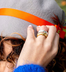 Stacked Squares Ring-Part of the Adversity Collection, this piece is angular but organic. If features a series of alternatively aligned squares stacked one on the next. Available as a ring or earrings, you can wear a beautifully handcrafted piece of jewellery that has meaning, yet is visually striking and comfortable on the hand. All pieces are all hallmarked by the official Irish Assay Office located in Dublin Castle. This piece is available in gold and silver with a gold plated option for the