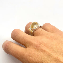 The burst of golden shards of sun that stream from this beautiful cabochon quartz gemstone are drawn out with streaks of 22ct gold fused into the sterling silver of this ring, highlighting the natural beauty captured within.