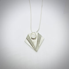 Sterling Silver art deco fan with delicate moonstone at its centre. The additional embellishment of alternate texturing makes this a sophisticated piece of jewellery.