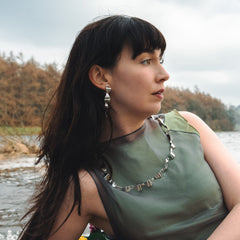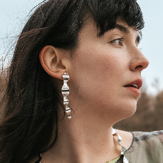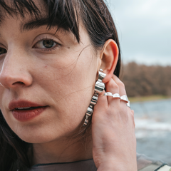 Handmade in county Kildare the fluid structure of these earrings are created by using traditional silversmithing techniques that you find in the National Museum of Ireland. Using recycled silver and carefully crafted for a sustainable practice that reflects the theme of water.